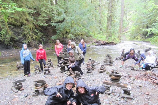 1. Show them my Land Art PowerPoint, the DVD Rivers and Tides, or some pictures of land art. You can do this several days before the class if you would like them to scope out areas or brainstorm ideas. Otherwise, simply show them at the beginning of class. You can give them criteria if you like (ex. create smooth colour transitions, create a specific shape such as a spiral, make a drawing, etc.), or give them total freedom.