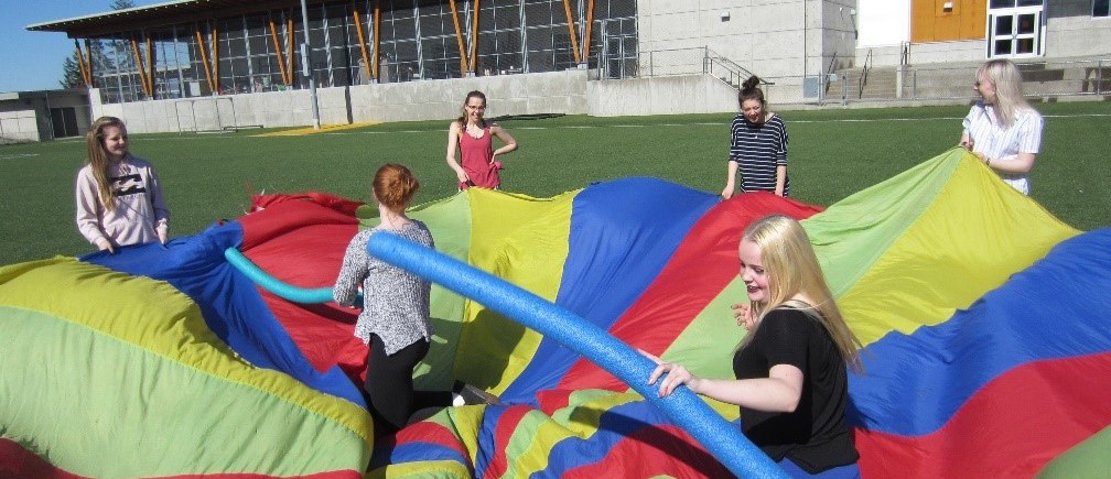You would think that 16-18 year old females would have no interest in parachute games, but I have yet to teach a class that didn’t love them. They are fun, novel, and not intimidating – as no one in the class is a parachute game expert! Some of the activities also teach cooperation, communication, and problem-solving, which is great for team-building and class dynamics. The key is to keep the students wanting more – switch it up before they are bored and limit activities to 30 minutes or so. That way they will be looking forward to doing it again in the future.