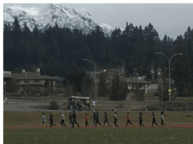 We are lucky to have a rubber-surface track right across from our school. This type of facility is excellent year round because it is easy on joints, stays clean (not muddy like the trails), and has the added bonus of bleachers – an additional place to workout! It is also free, you don’t need to bring any equipment with you, it’s a switch up from regular PE classes, and it introduces students to a community facility.
